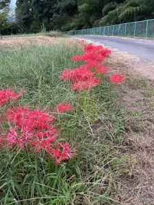 9月27日(先週末)に「曼殊沙華」の花がきれいに咲いているのを散歩中に発見しました。