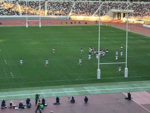 観戦したのは大学ラグビーです。生の試合を見るのも久々です。